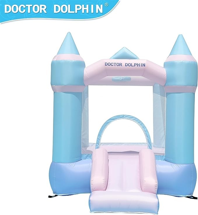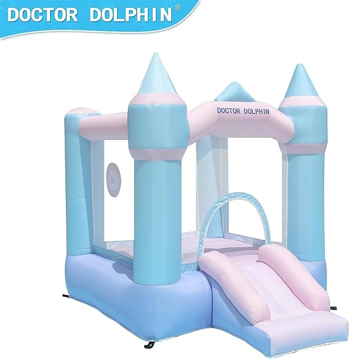 Bounce House with Slide for Kids Toddlers,8.43 x 6.56 x7.38 ft Bouncer Inflatable Bouncy Castle with Blower Basketball Hoop for Backyard Wedding Wet & Dry