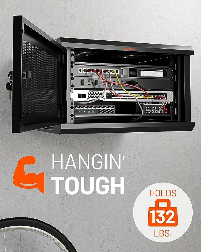 • Made from heavy duty steel, this enclosure holds up to 132lbs safely on the wall. Once it's mounted, manage your cables by popping off the side panels without tools. Finish the job with the 2x included shelf straps and 4x shelf stops. Your setup is about to be clean as a whistle.