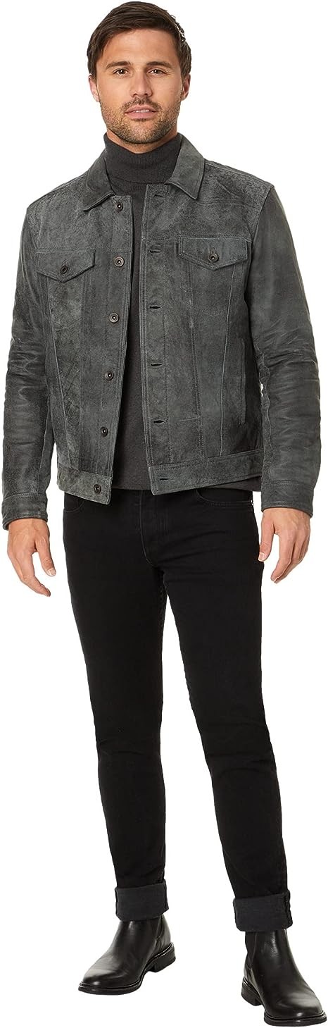 JOHN VARVATOS Men's Andrew Trucker Jacket with Shank Closures