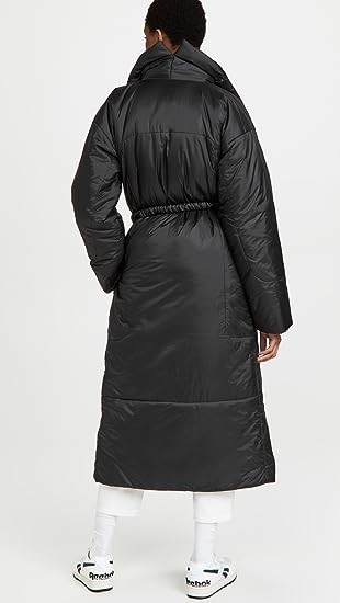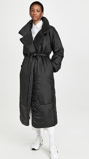 Stand collar and long sleeves, open front, waist drawstring tie, quilted design