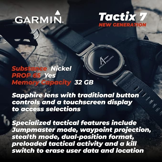 Wearable 4U Garmin tactix 7 Pro Ballistic GPS Tactical Smartwatch Set (tactix 7 Pro Ballistic, + Black Earbuds)