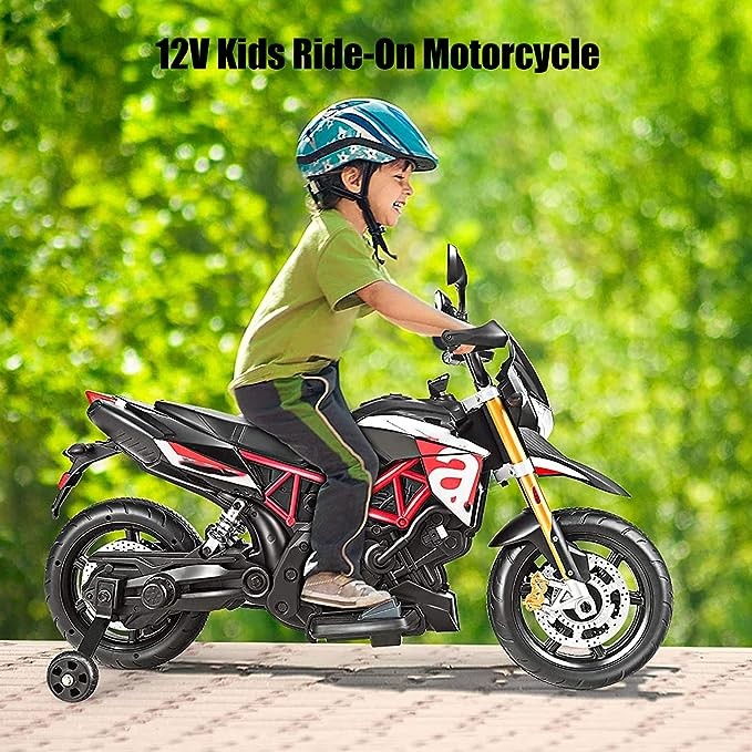 Balance Training Wheels: Designed with 2 detachable training wheels, this kids riding motorcycle can ensure good balance and safety. This 12V ride-on motorcycle is rear-wheel drive and has powerful shock springs to ensure it moves smoothly.