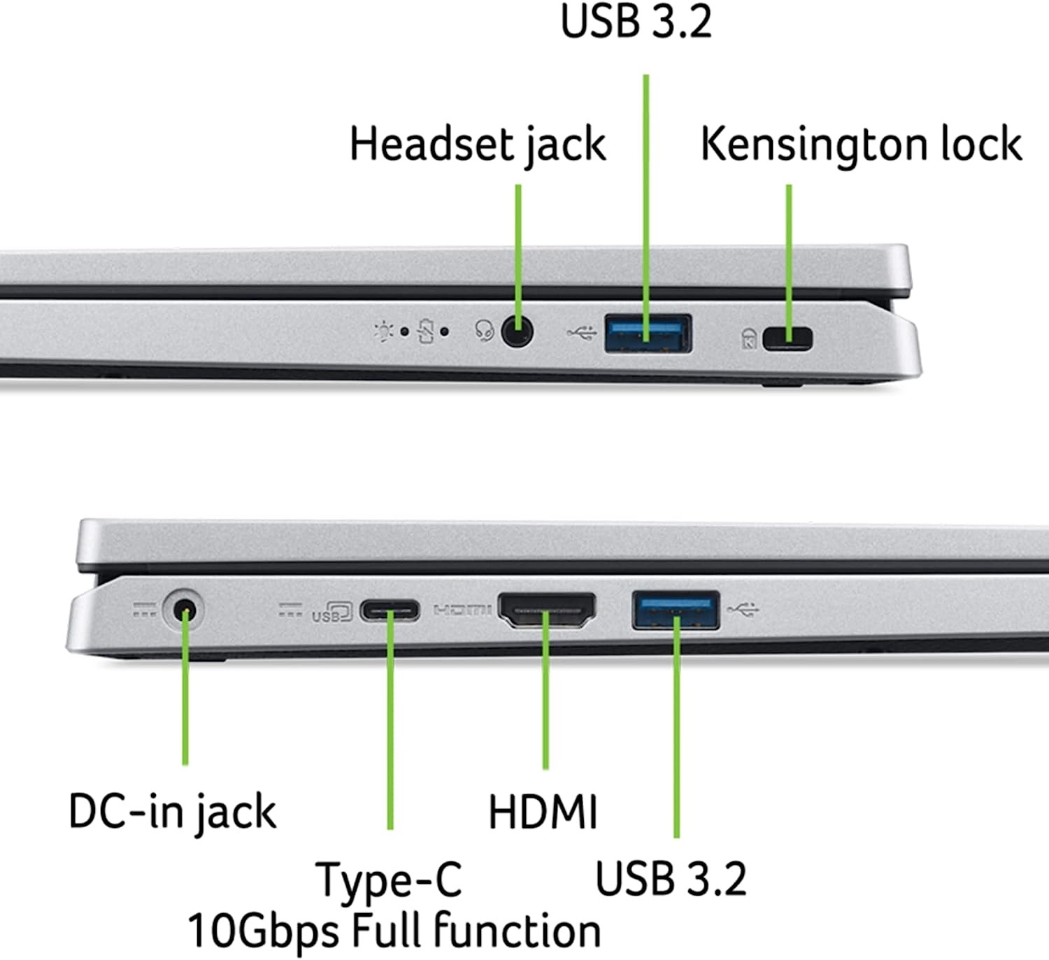 Connect: Connect or charge your new device via an all-USB Type C port. In addition,Wi-Fi 6 and HDMI 2.1 bring greater productivity and functionality to your life... Smart: The 720p HD webcam uses Acer's Temporary Noise Reduction (TNR) technology and Acer Purified Voice and Intelligent Noise reduction to achieve clear audio output during streaming or calling... Ports: 1-USB Type-C port 3.2 Generation 2(up to 10 Gbps)USB Type-C and DisplayPort ports for USB charging,2 USB 3.2 Gen 1 ports,1 HDMI 2.1 port with HDCP Supports and 1 combined headphone/microphone input jack. Windows 11 Home in S Mode - streamlined and superior performance, and works with apps from the Microsoft Store