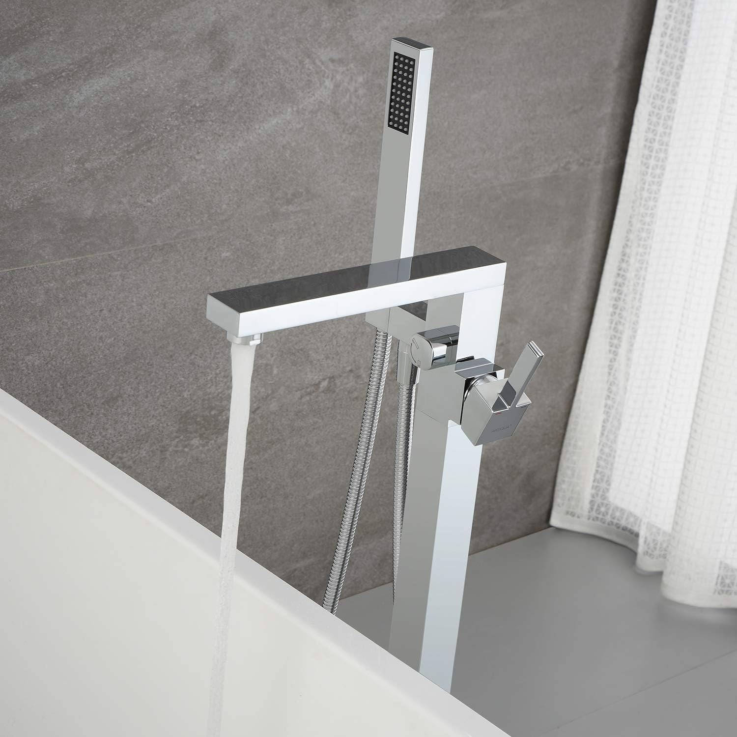 Artiqua Freestanding Bathtub Faucet Tub Filler Chrome Floor Mounted Brass Bathroom Faucets with Handheld Shower
