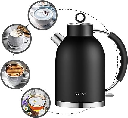 STYLISH & PRACTICAL DESIGN - ASCOT stainless steel electric kettle with unique design and beautiful appearance. Anti-scald handle, round spout, separate lid, and spout filter are handmade by experienced craftsmen under strict quality standards.