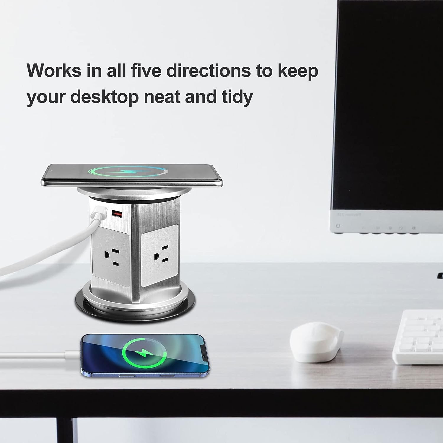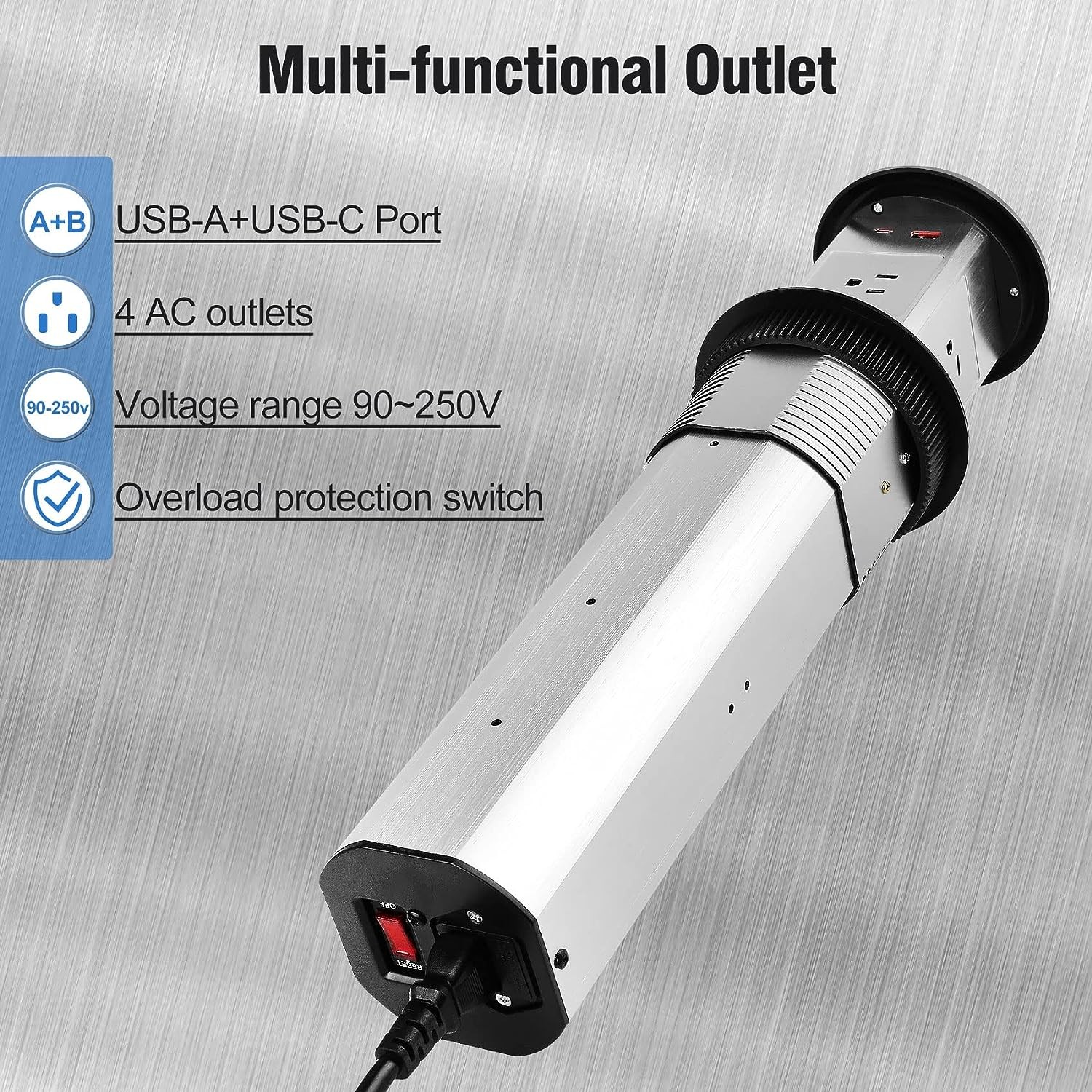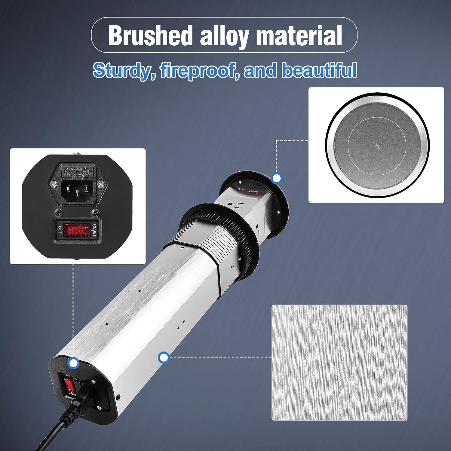 Automatic Pop Up Outlet, 3.9"Pop Up Outlet for Countertop With 15w Wireless Charger,4 Ac,1 Usb A,1 Usb C,Pop Up Outlet For Kitchen Countertop 7 In 1 Sliver Pop Up Electrical Outlets For Countertops