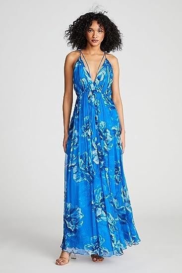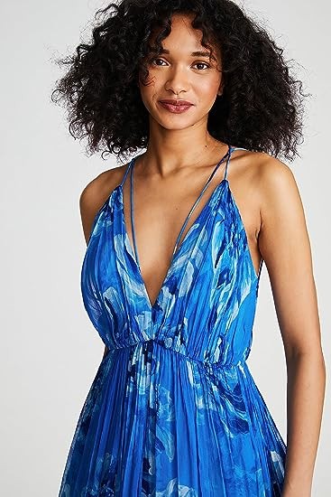 Printed pleated viscose pleated V-neck dress