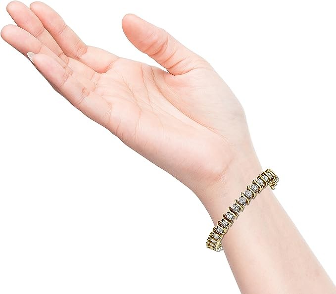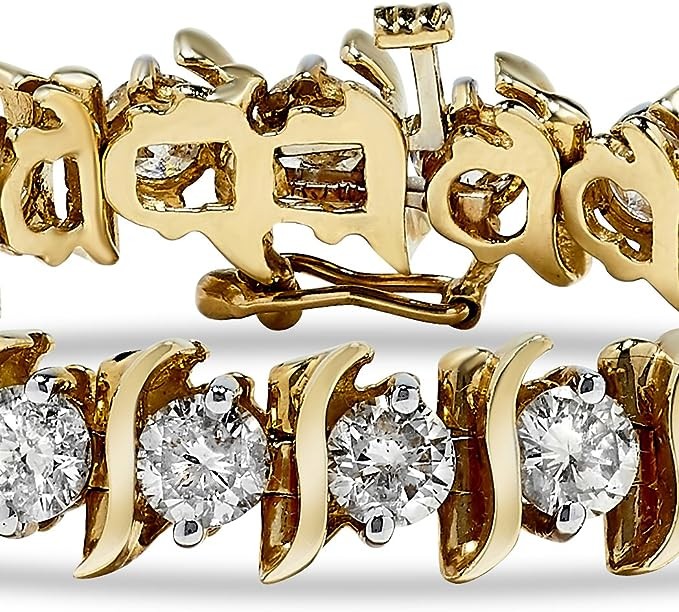 IGI Certified 8 carat Women's Diamond bracelet,14K gold "S" chain,7 inches (I-J,I2), 7 inches, metal, diamond