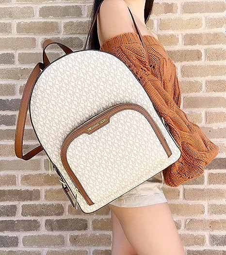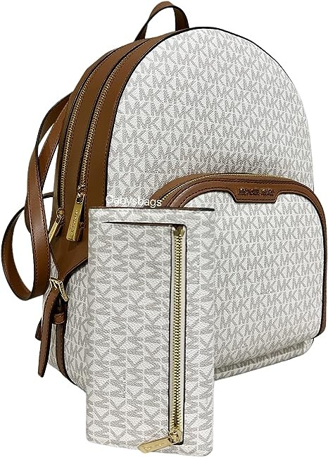 Michael Kors Jaycee Large Backpack School Bag Bundled Jet Set Travel Large Trifold Wallet MK Signature (Vanilla MK)