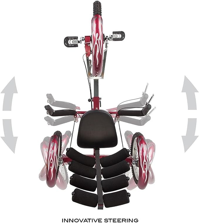 A 3-wheeled bicycle for women and men who want a little exercise and fun outside. This recumbent three-wheel bicycle is great for exercise, leisure rides, a quick trip to the market, or even walking the dog. Equipped with a reverse gear, backing up in a snap! Trike recumbent bikes are more comfortable and let you ride and exercise longer. Ergonomic recumbent seat provides evenly cushioned back support. A three-wheeled cruiser bike for women and men who prefer a more comfortable ride than a standard upright bicycle. A tricycle recumbent is an excellent way to keep fit and enjoy the outdoors. Increase your daily calorie burn and get a cardiovascular workout with minimal stress on your knees, back and joints. Features adjustable frame that makes riding this 3-wheel bicycle comfortable and easy for the whole family. Suitable for riders 4 feet Tall to 6 feet 3 inches Tall and weighing up to 250 lbs. Almost anyone can ride this adult pedal trike! Ride with confidence! Low center of gravity on this three-wheel cruiser provides unprecedented stability. No balance required. Dual-joystick steering offers smooth maneuverability with simple hand movements. Durable heavy duty recumbent three-wheeled bicycle frame is constructed of hi-ten steel. This tricycle cruiser features chainless design, caliper handbrakes, 20 inch front wheel with free-wheel hub, 16 inch rear wheels, inflatable rubber tires and a safety flag. Dimensions: 28 x 25. 6 x 48 inches (62 inches extended). weight 44 lbs. A 3-wheel bike for women, men, teens and kids ages 10 and up. Some assembly required.