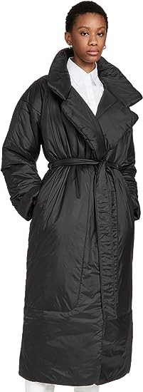 Stand collar and long sleeves, open front, waist drawstring tie, quilted design